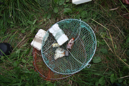 Der bruges lokkemad som kan være enten lidt kød eller endnu bedre et stykke fisk , fra sammen  vandsystem/område.